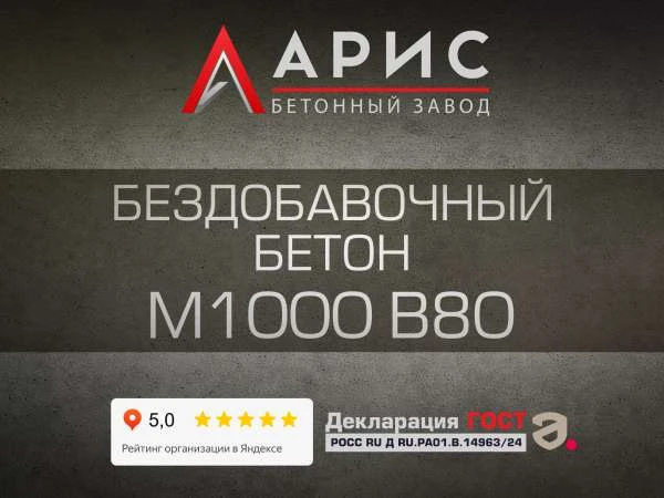 Бездобавочный бетон М1000 от завода «Арис» – это высокопрочное решение с паспортом качества и поставкой по графику, когда на объекте важна предсказуемость результата.