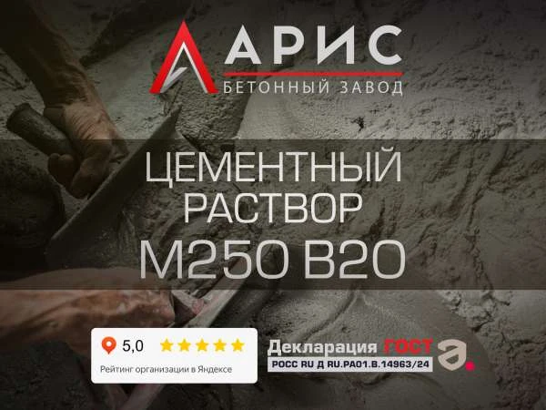 Цементный раствор М250 (B20) применяют в работах, где требуется прочный слой и контроль качества между рейсами, особенно при серийной укладке. Мы – производитель: завод «Арис» выпускает готовый раствор по гост 28013–98, оформляет паспорт качества и поставляет на объекты в Химках. Минимальный объём – от 1 м3, что позволяет купить материал под конкретный фронт работ без излишков.